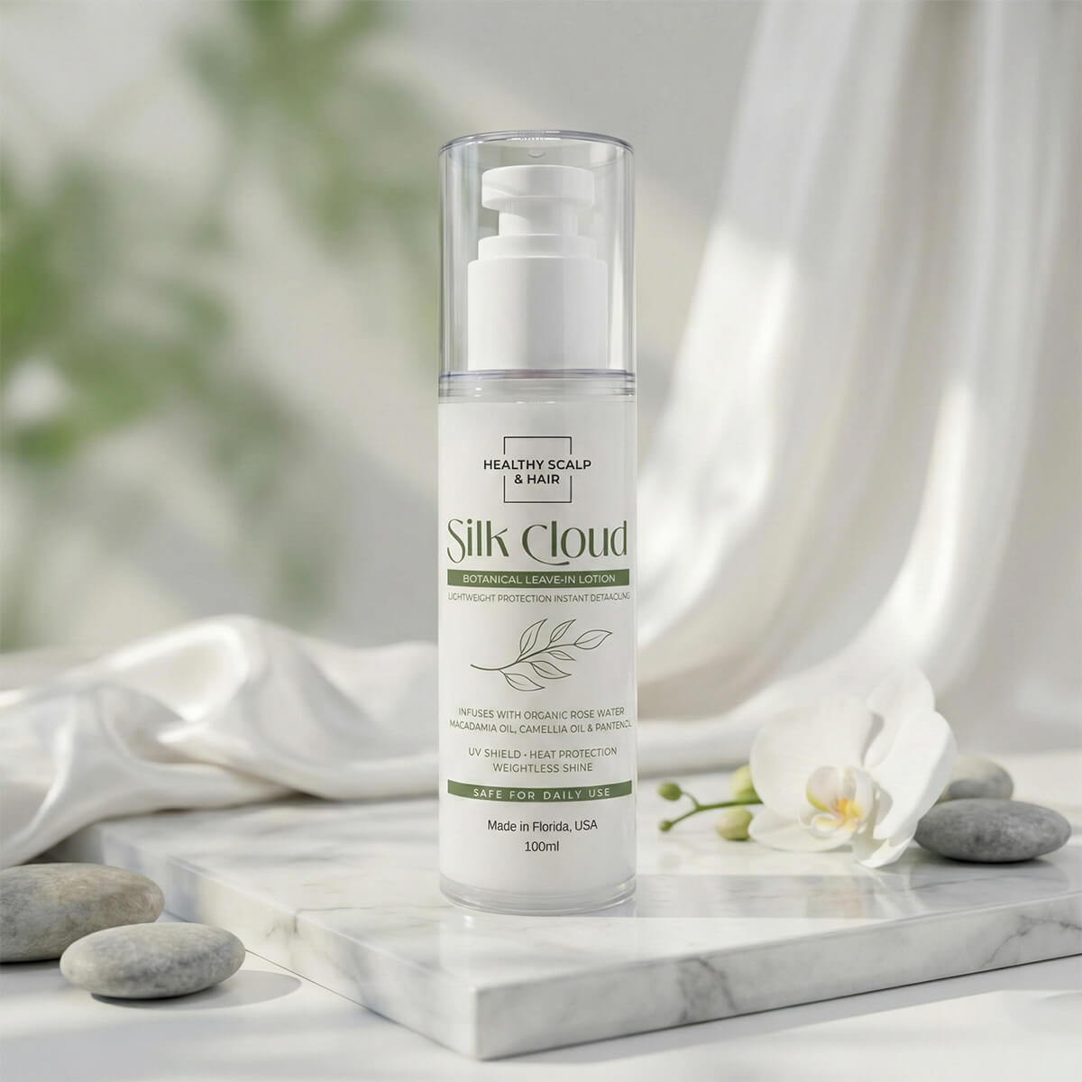 A lightweight botanical leave-in that softens, detangles, and protects hair while keeping it smooth and manageable.